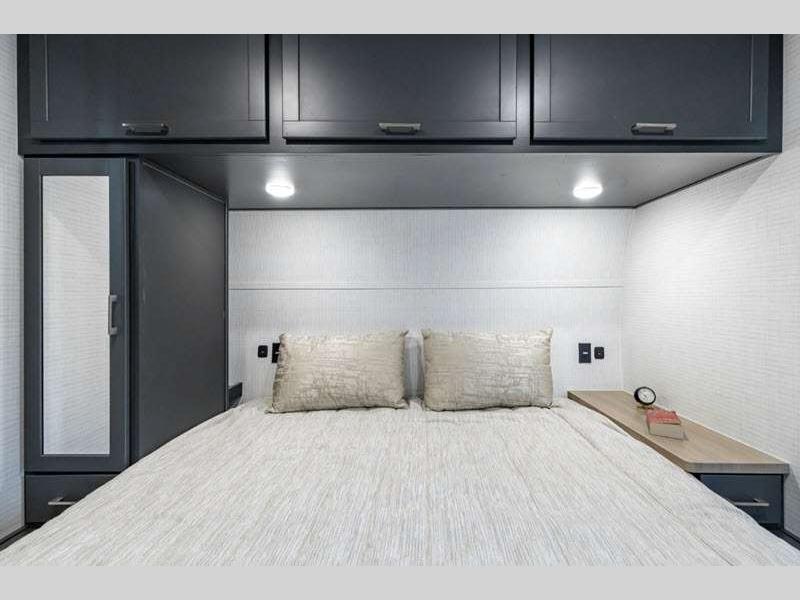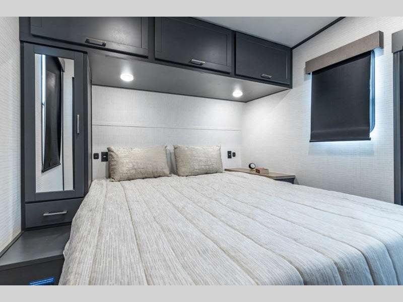 Sleeps 6 Length 34 ft 1 in Ext Width 8 ft 6 in Ext Height 12 ft 9 in Hitch Weight 1470 lbs GVWR 13470 lbs Dry Weight 8429 lbs Cargo Capacity 5041 lbs Fresh Water Capacity 102 gals Grey Water Capacity 82 gals Black Water Capacity 42 gals Tire Size 16" Furnace BTU 35000 btu Fuel Capacity 40 gals Number Of Bunks 1 Available Beds King Refrigerator Type 12V Refrigerator Size 10.7 cu ft Convection Cooking Yes Cooktop Burners 3 Number of Awnings 1 Axle Weight 6000 lbs Garage Size 16 ft 1 in LP Tank Capacity 30 lbs Water Heater Type Tankless AC BTU 15000 btu Awning Info With LED Lights Axle Count 2 Number of LP Tanks 2 Shower Type Radius Solar Wattage 200 watts Similar Floorplans