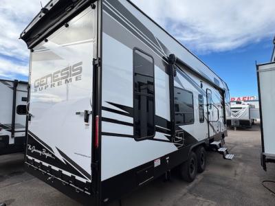 At Rowley White RV, we carry a wide selection of Genesis Supreme toy haulers in Mesa, Phoenix, or Flagstaff AZ. and Idaho Falls, ID. Whether you're looking for a full-time RV with all the amenities or a smaller model for weekend getaways, we have just what you need. Our knowledgeable sales staff can help you find the perfect Genesis Supreme toy hauler floor plan and features that meet your needs. Whether you're looking for a toy hauler fifth wheel or a toy hauler travel trailer, you can enjoy premium construction and superior design with a Genesis Supreme toy hauler.