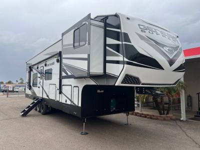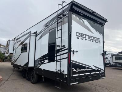 At Rowley White RV, we carry a wide selection of Genesis Supreme toy haulers in Mesa, Phoenix, or Flagstaff AZ. and Idaho Falls, ID. Whether you're looking for a full-time RV with all the amenities or a smaller model for weekend getaways, we have just what you need. Our knowledgeable sales staff can help you find the perfect Genesis Supreme toy hauler floor plan and features that meet your needs. Whether you're looking for a toy hauler fifth wheel or a toy hauler travel trailer, you can enjoy premium construction and superior design with a Genesis Supreme toy hauler.