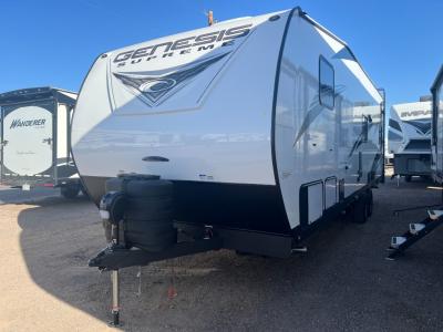 At Rowley White RV, we carry a wide selection of Genesis Supreme toy haulers in Mesa, Phoenix, or Flagstaff AZ. and Idaho Falls, ID. Whether you're looking for a full-time RV with all the amenities or a smaller model for weekend getaways, we have just what you need. Our knowledgeable sales staff can help you find the perfect Genesis Supreme toy hauler floor plan and features that meet your needs. Whether you're looking for a toy hauler fifth wheel or a toy hauler travel trailer, you can enjoy premium construction and superior design with a Genesis Supreme toy hauler.
