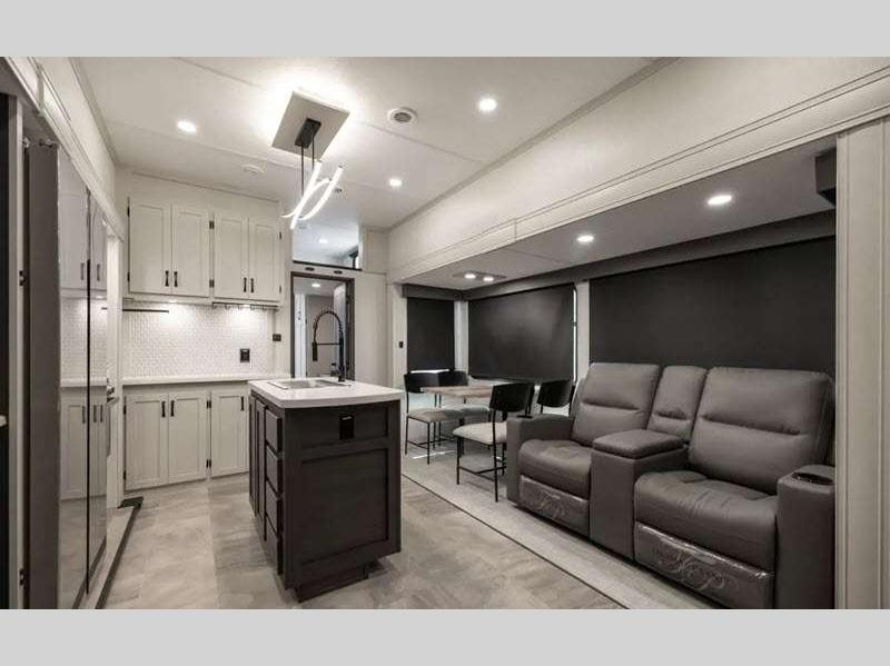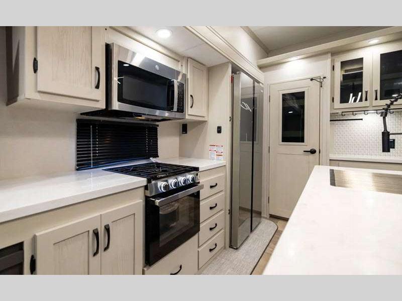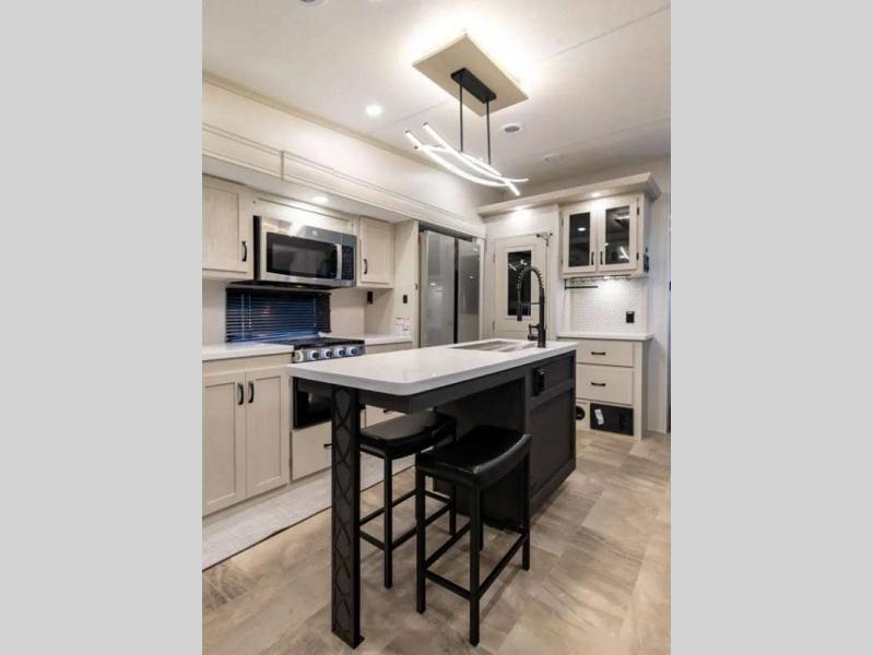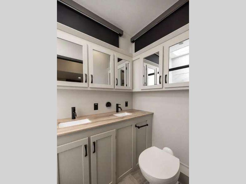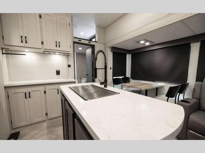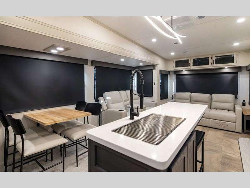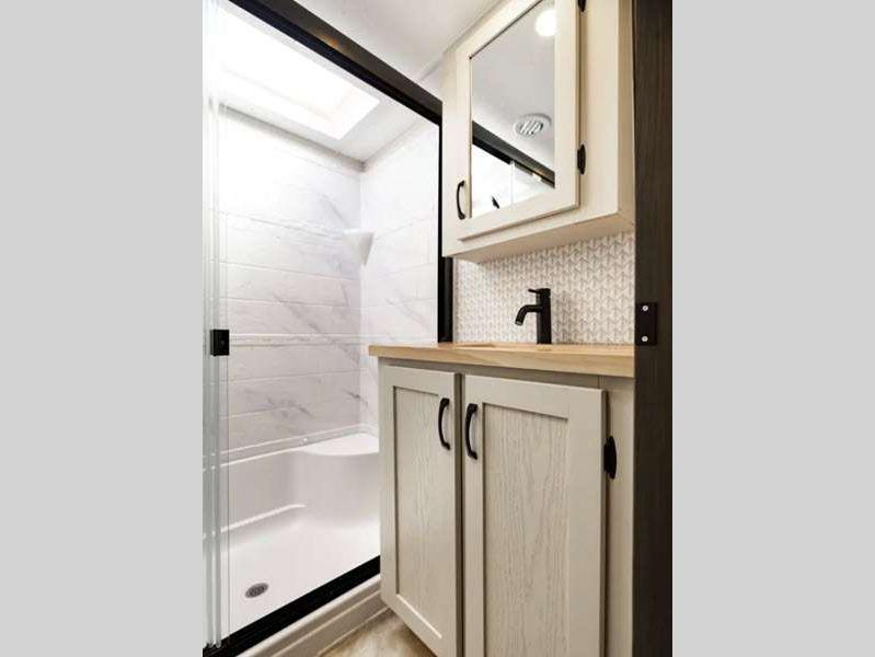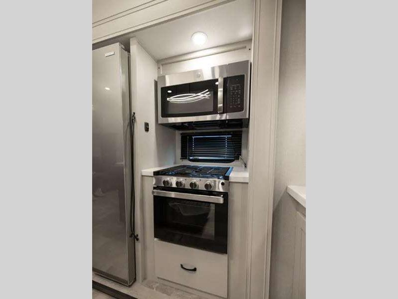 Each exterior includes a Tri-Tex powder coated frame technology for up to 5X more weather resistance and a vacuum bonded 6X double Azdel aluminum cage sidewall system. The Weather Shield has been 0 degree cold tested and 110 degree hot tested in an extreme temperature chamber to prove how well they can withstand intense weather conditions. You'll enjoy many upgraded features, including an extra deep single basin sink, a GE Profile microwave and oven, a new JBL marine grade exterior HD speaker, and the list goes on!