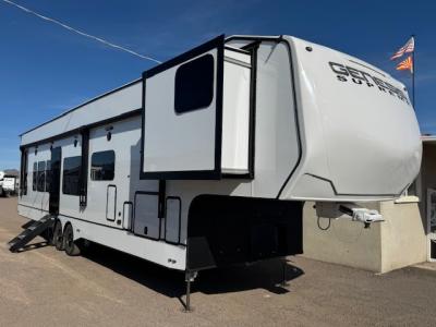 Toy hauler fifth wheels with closed garage are built like fifth wheels with the special hitch that attaches to your truck’s bed, but it also comes with a spacious garage area in the rear, making it perfect for bringing along all of your favorite toys. Our closed-garage toy hauler fifth wheels are thoughtfully designed with your convenience in mind. From easy-to-use loading ramps to innovative storage solutions, we've got you covered. Inside, experience the luxury of modern living, featuring premium materials, cutting-edge appliances, and ample space for relaxation. Whether you are looking for an awesome place to store your ATV, your kayaks, your jet skis, or anything else, the toy hauler fifth wheel is perfect for you! If this sounds like the kind of RV that you are in the market for, you can check out our complete inventory of toy hauler fifth wheels for sale in Phoenix, Arizona in the listing below. No matter what kind of RV you are in the market for, you can find some amazing options at Rowley White RV, your top toy hauler fifth wheel with closed garage dealer in Phoenix, Arizona. Or, if you have any questions, you can contact us today for all of the details.