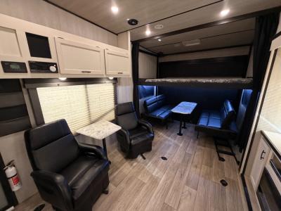 Welcome to Rowley White RV, home of some amazing toy hauler models, including our open plan toy hauler fifth wheels for sale in Phoenix, Arizona. Toy hauler fifth wheels with open plans are built like fifth wheels with the special hitch that attaches to your truck’s bed, but it also comes with a spacious garage area in the rear, making it perfect for bringing along all of your favorite toys. The open-plan design allows you to create your perfect environment, adapting the interior to suit your needs and preferences. Unwind after an exhilarating day in the wilderness, knowing your equipment is safely stored in the garage. Whether you are looking for an awesome place to store your ATV, your kayaks, your jet skis, or anything else, the toy hauler fifth wheel is perfect for you! If this sounds like the kind of RV that you are in the market for, you can check out our complete inventory of toy hauler fifth wheels for sale in Phoenix, Arizona in the listing below. No matter what kind of RV you are in the market for, you can find some amazing options at Rowley White RV, your top toy hauler fifth wheel with open plans dealer in Phoenix, Arizona. Or, if you have any questions, you can contact us today for all of the details.